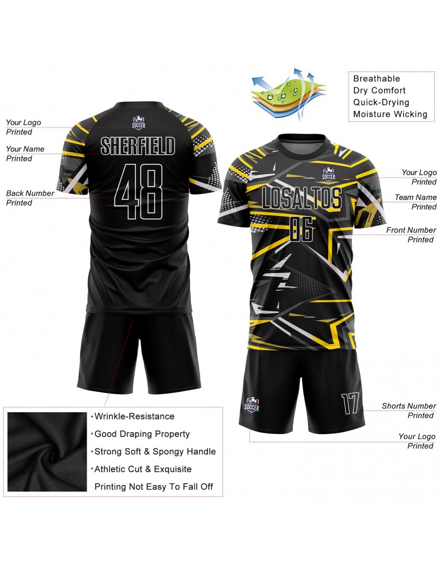 Best Pro Custom Black Black-Gold Green Sublimation Soccer Uniform Jersey