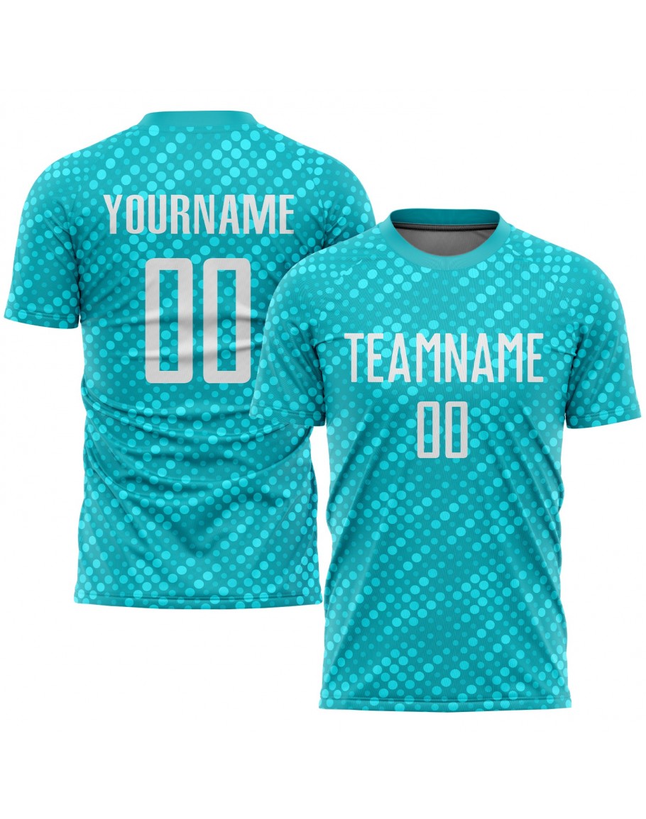 Custom Aqua White Sublimation Soccer Uniform Jersey