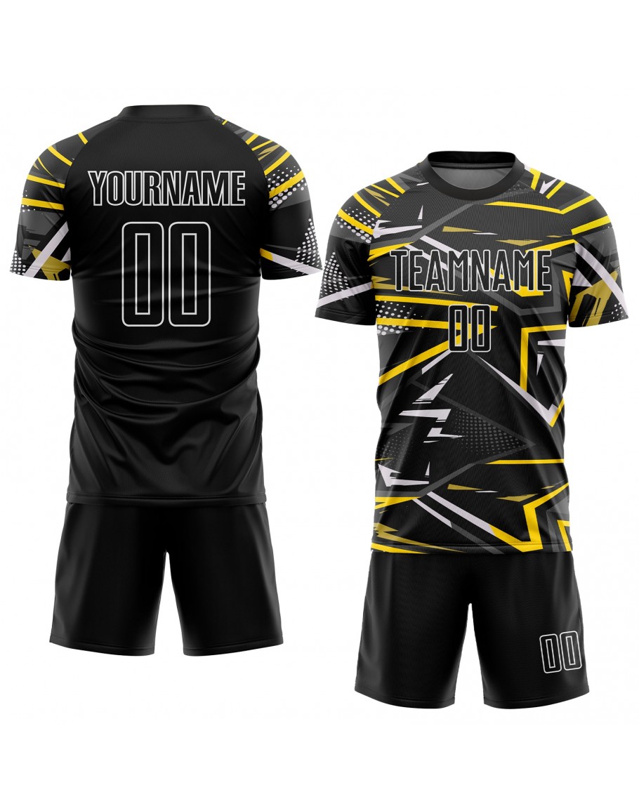 Best Pro Custom Black Black-Gold Green Sublimation Soccer Uniform Jersey