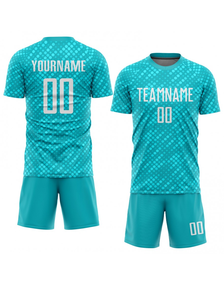 Custom Aqua White Sublimation Soccer Uniform Jersey